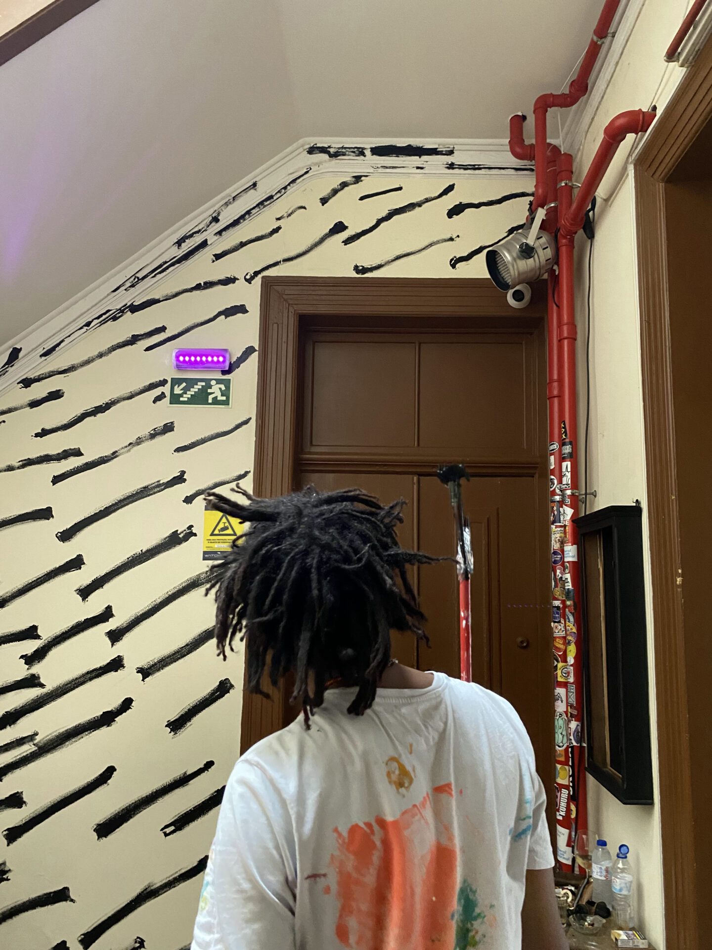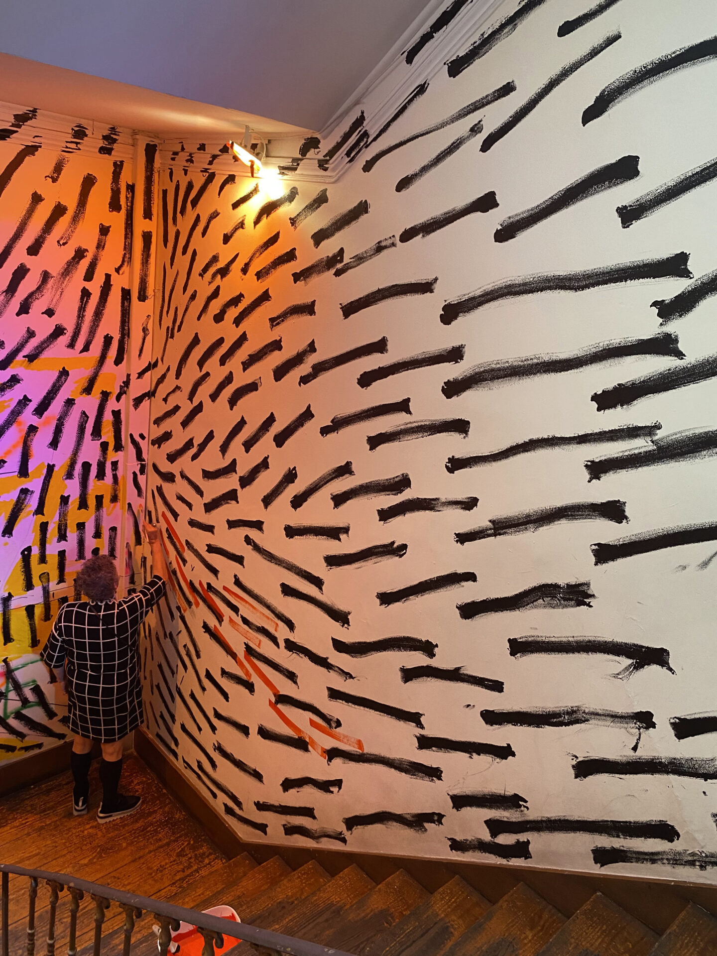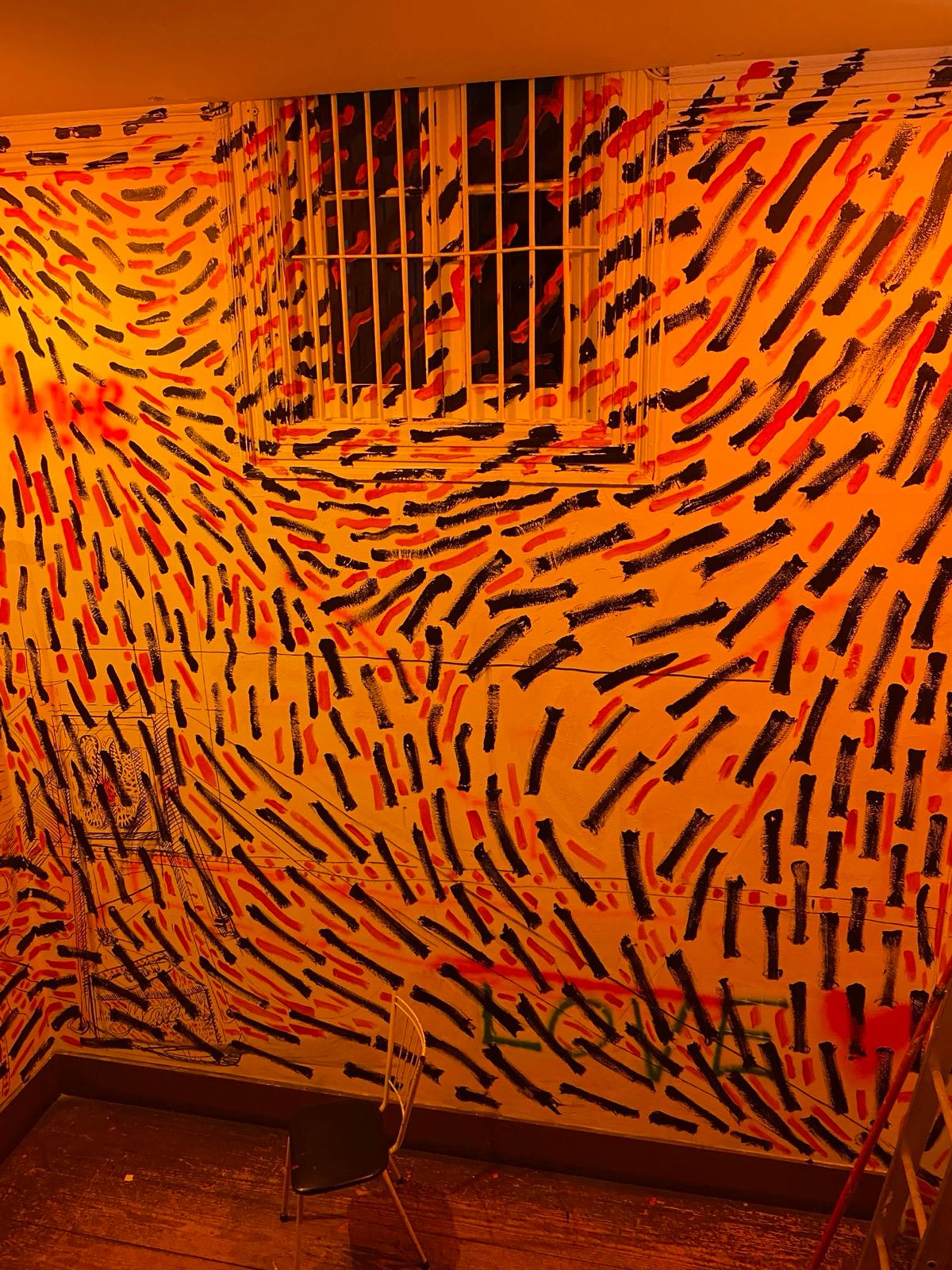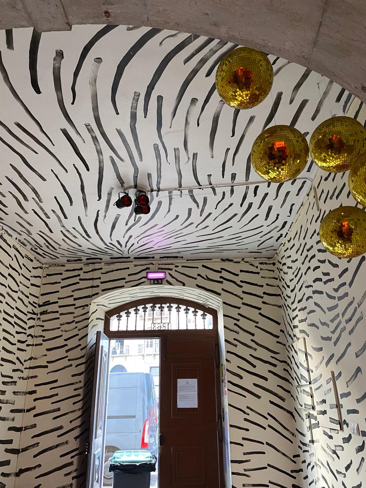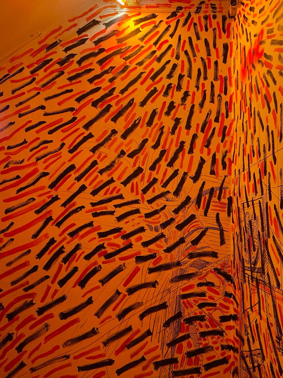 O mural, composto por pintas e traços que, isoladamente, são pequenos elementos mas que, em conjunto, constroem uma imagem maior, espelha o modo como a Casa Independente acolhe e faz convergir pessoas, práticas e projetos. Representa a resiliência e a resistência cultural que definem a Casa no panorama lisboeta, ao mesmo tempo que evoca a passagem do tempo, as memórias e o legado que aqui se constroem — sempre com o olhar voltado para o futuro, tal como as “pingas” que avançam e se transformam no seu curso natural.
