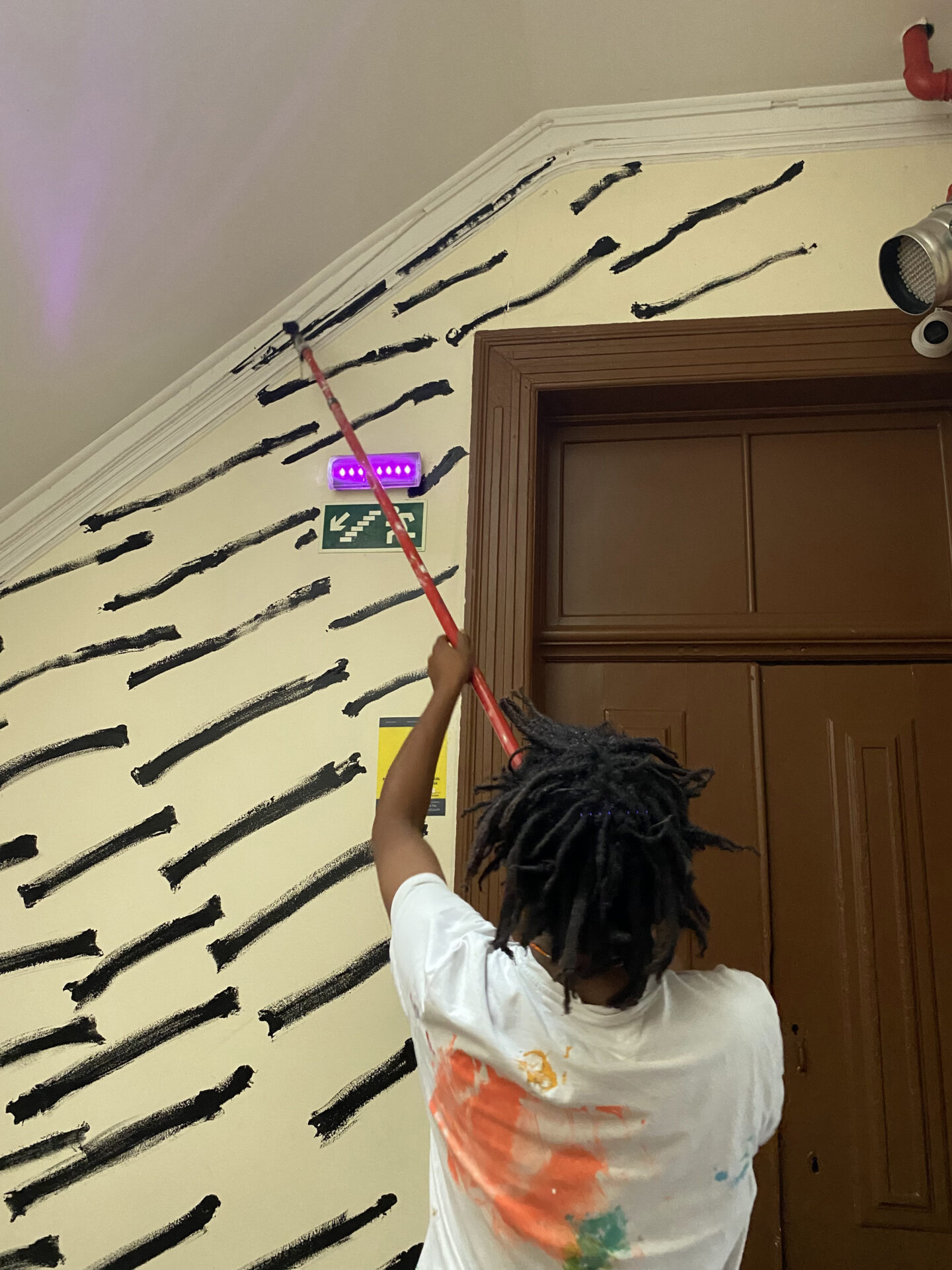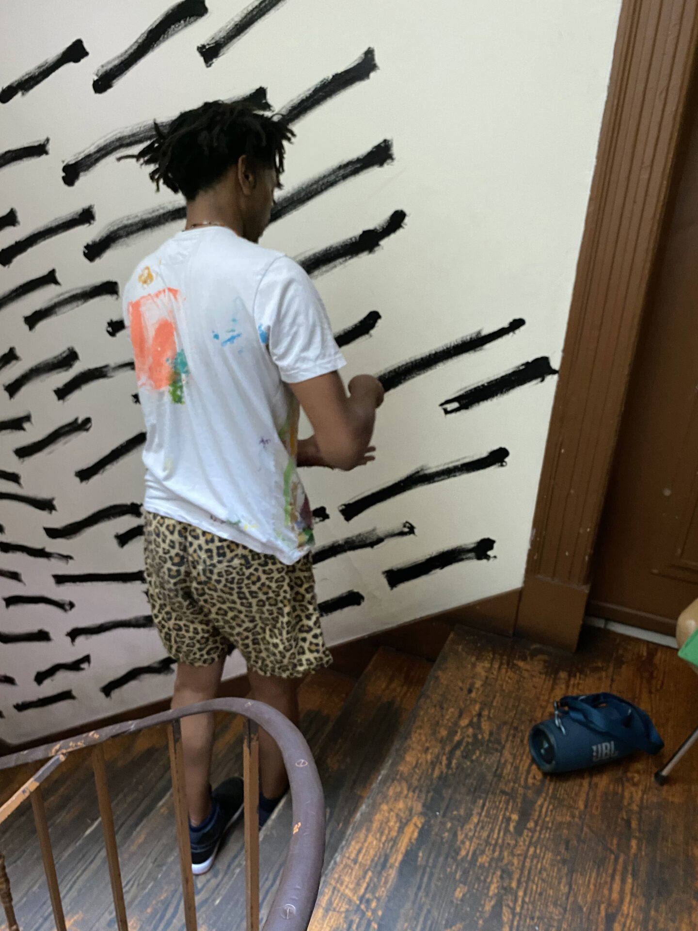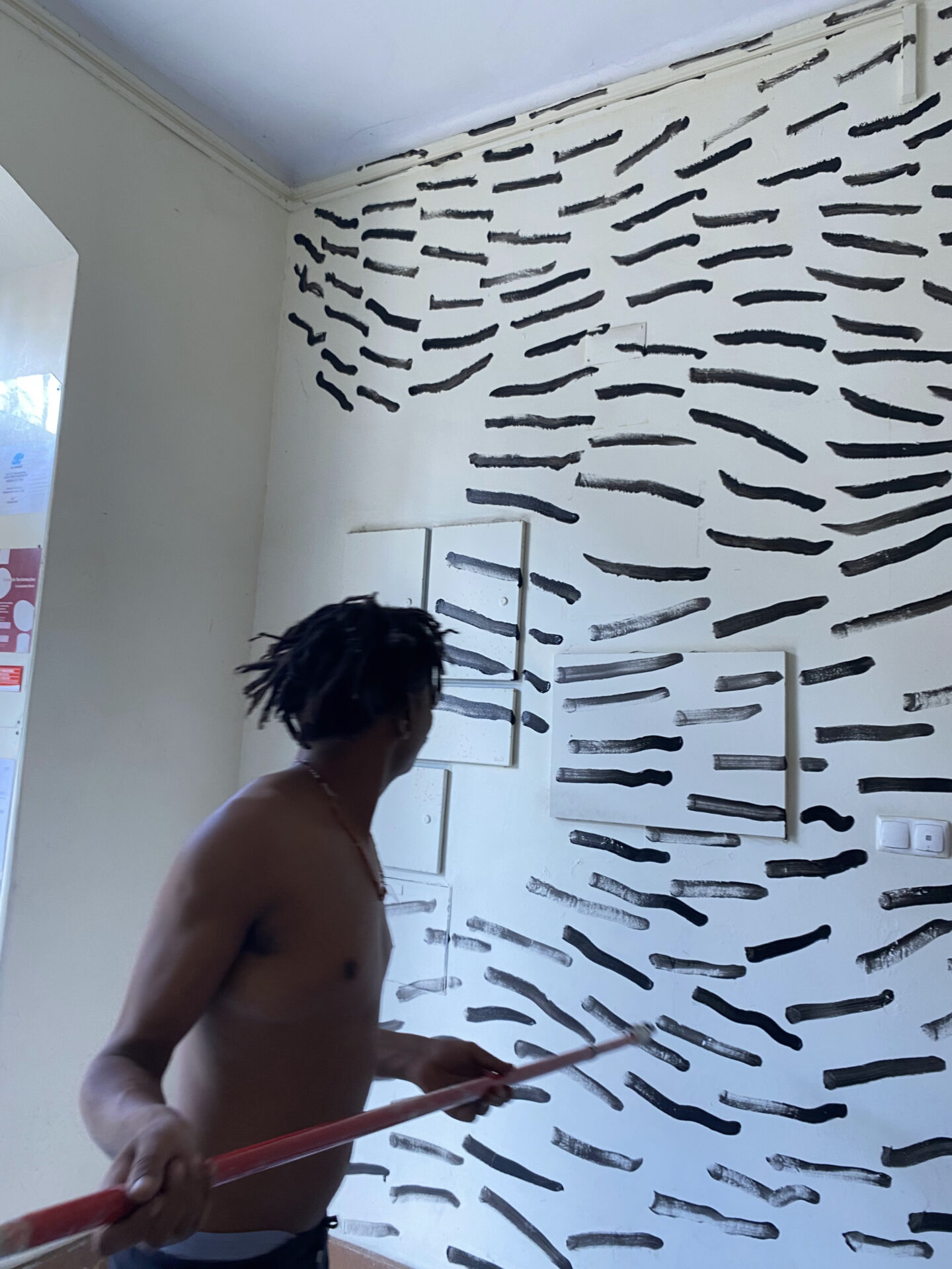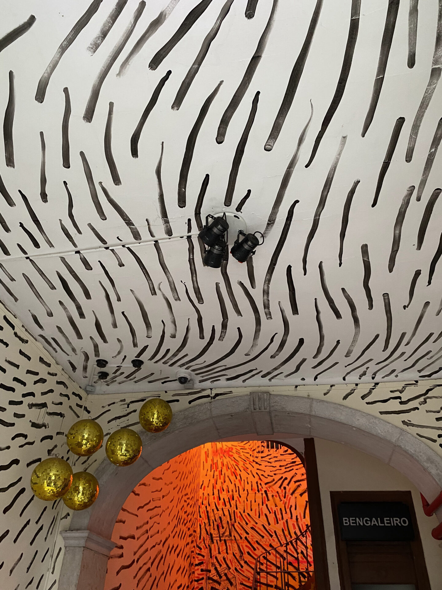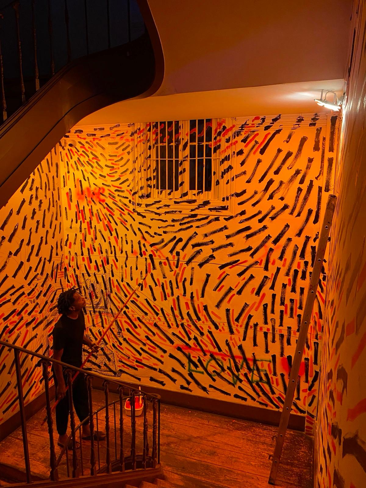 O mural, composto por pintas e traços que, isoladamente, são pequenos elementos mas que, em conjunto, constroem uma imagem maior, espelha o modo como a Casa Independente acolhe e faz convergir pessoas, práticas e projetos. Representa a resiliência e a resistência cultural que definem a Casa no panorama lisboeta, ao mesmo tempo que evoca a passagem do tempo, as memórias e o legado que aqui se constroem — sempre com o olhar voltado para o futuro, tal como as “pingas” que avançam e se transformam no seu curso natural.